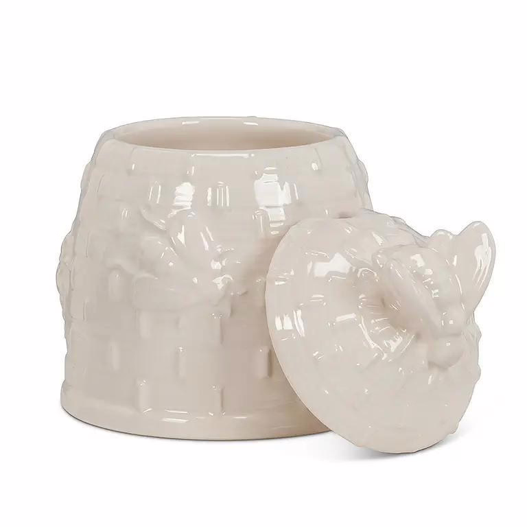 Nature’s sweetest syrup deserves a container just as sweet — and this Beehive Honey Pot fits the bill! Crafted from durable stoneware with a matching lid, this charming ivory pot is sculpted to resemble a classic beehive, complete with busy little bumblebees buzzing around their home. Perfect for serving or displaying honey in the kitchen or at the table, it adds a touch of whimsy and warmth to any space.