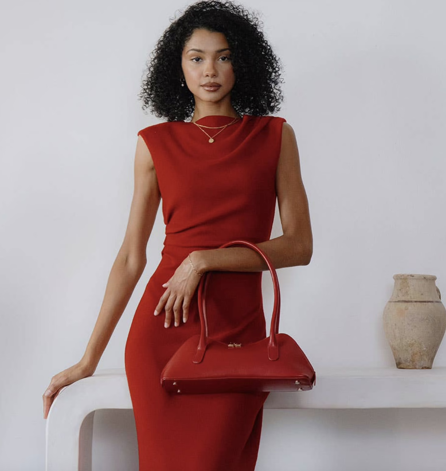 Experience effortless elegance with The Dakota bag—a modern shoulder style designed for everyday versatility. Crafted from recycled vegan leather with a certified OEKO-TEX lining, it offers a spacious interior complete with a slip pocket and room for your essentials, including an iPhone 14 Pro. Its gracefully curved top, double handles, and gold-tone hardware lend a refined finish, making Dakota the perfect choice for any occasion.