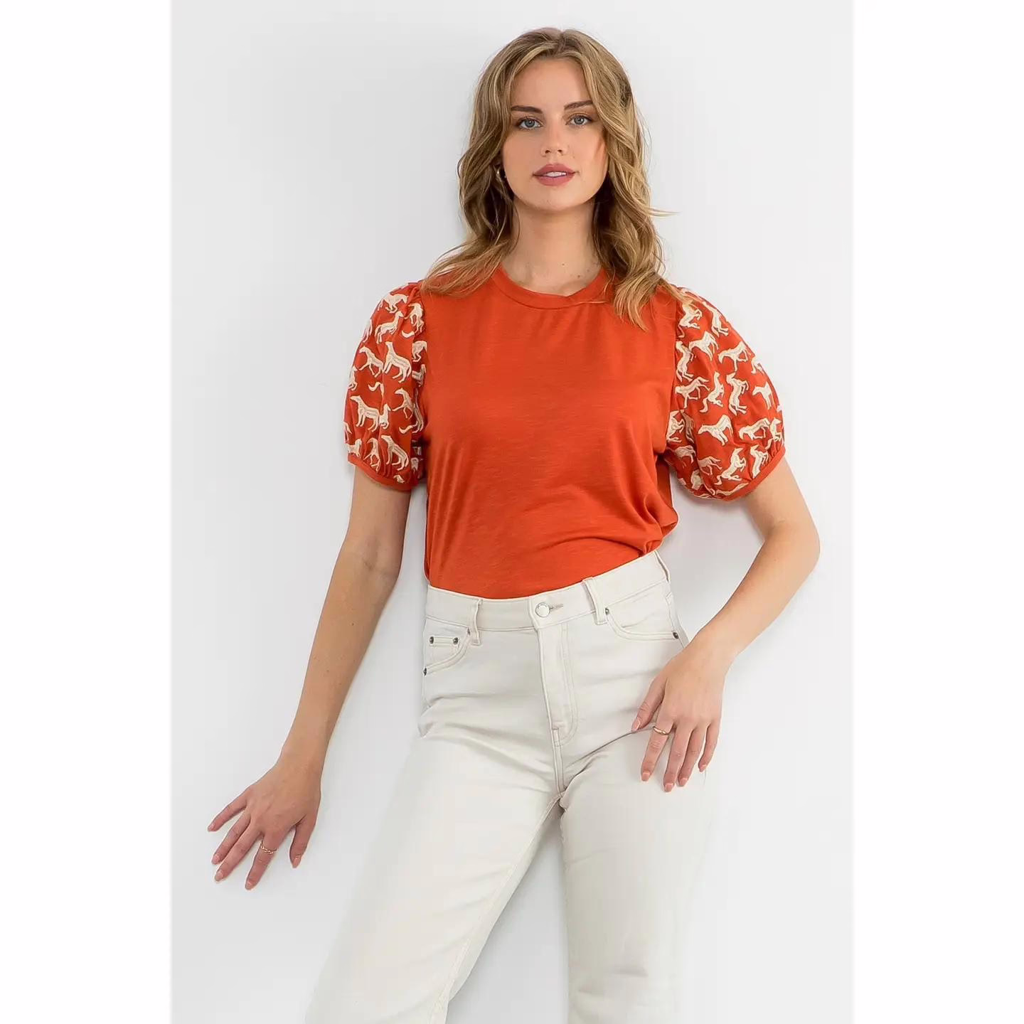 Playful and artful, the Eliza Top features whimsical horse embroidery that brings personality to your look. Designed in the USA with a relaxed fit, this piece is perfect for pairing with denim or dressing up with a skirt.