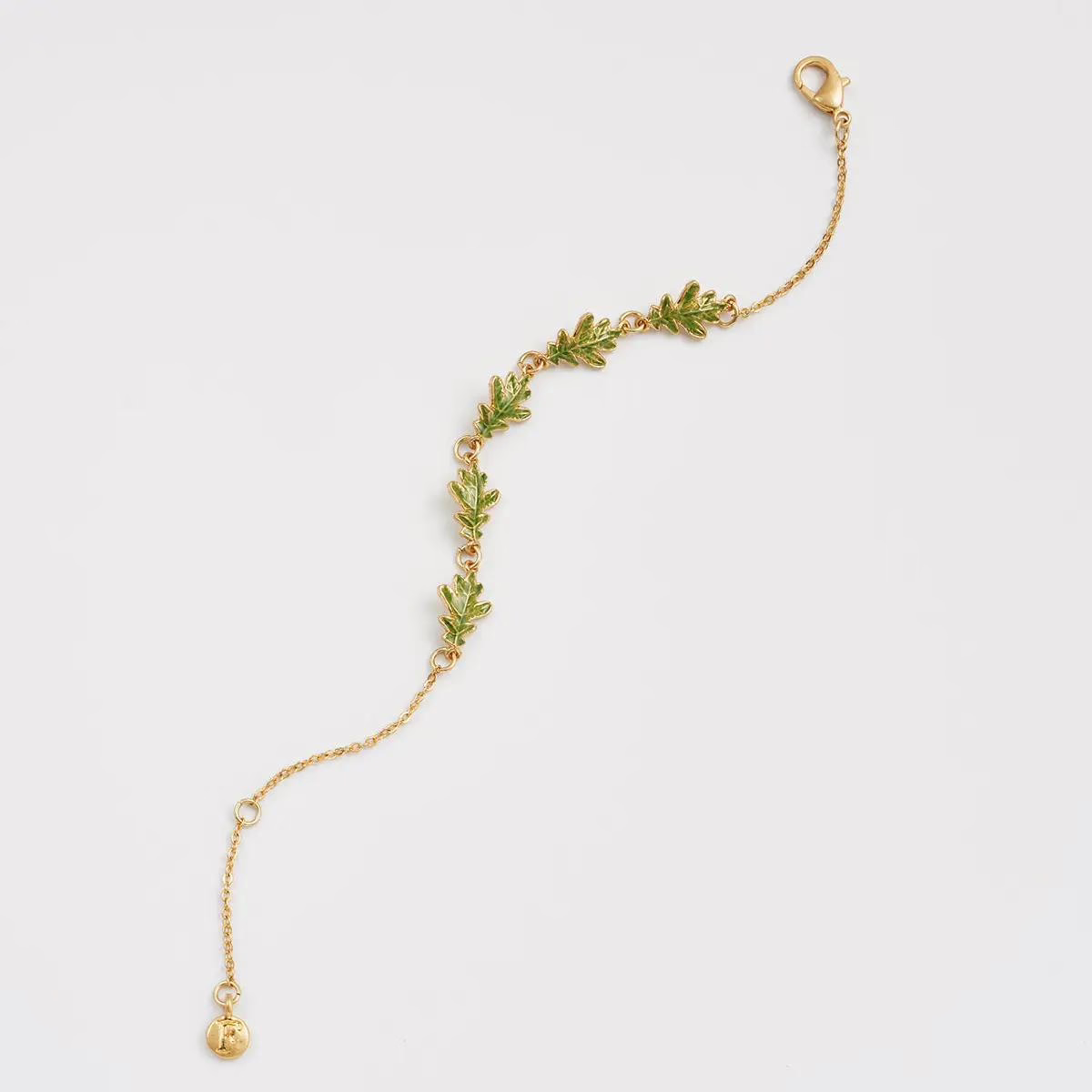 Features hand-painted gold and soft green enamel leaves in a vintage-inspired finish that catches the light like dappled sunlight through woodland canopies. This charming bracelet perfectly captures the spirit of nature’s quiet resilience.